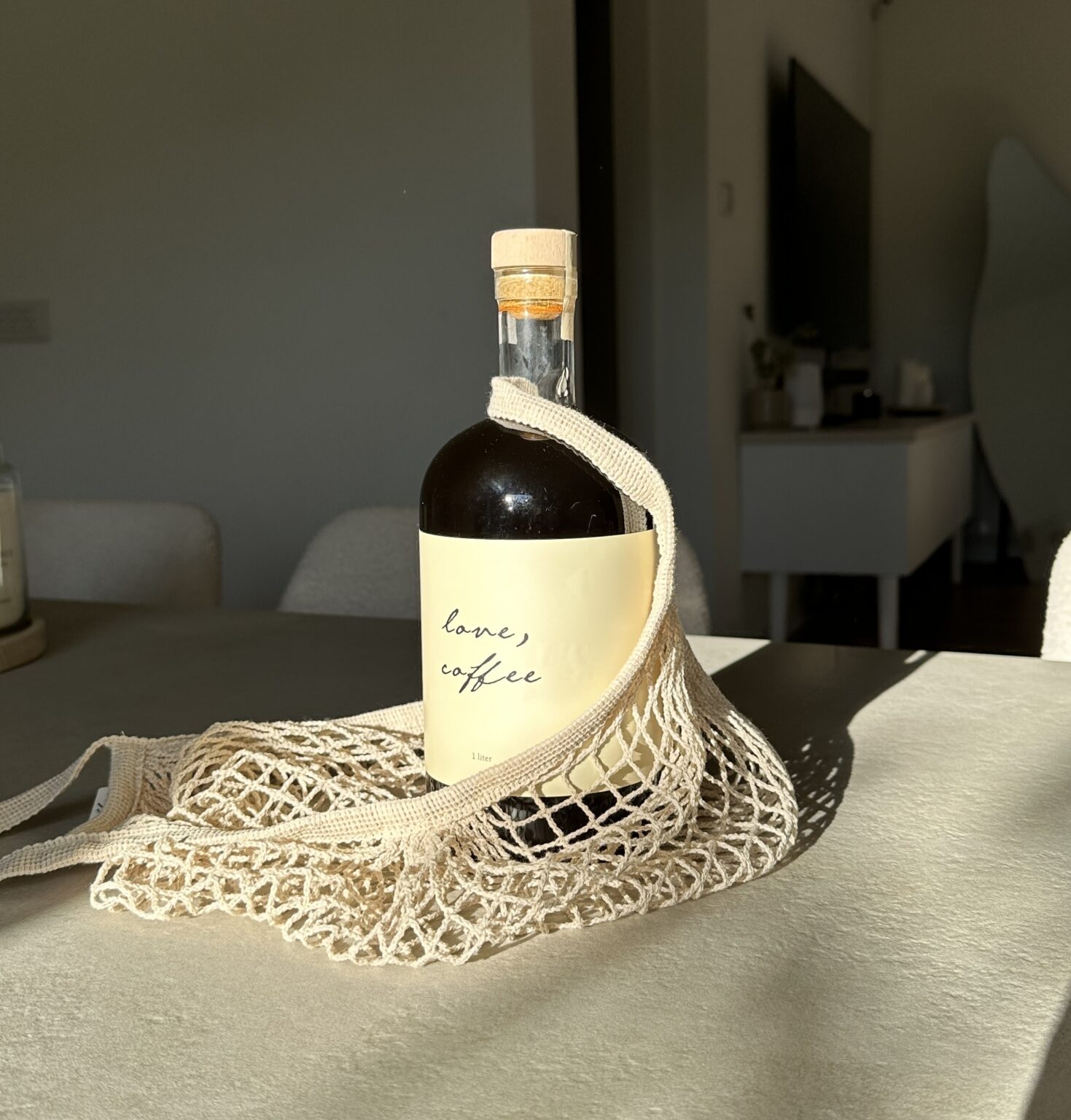 קפה LOVE COFFEE בחליטה קרה – 1 ליטר ארוז בשק רשת לבן