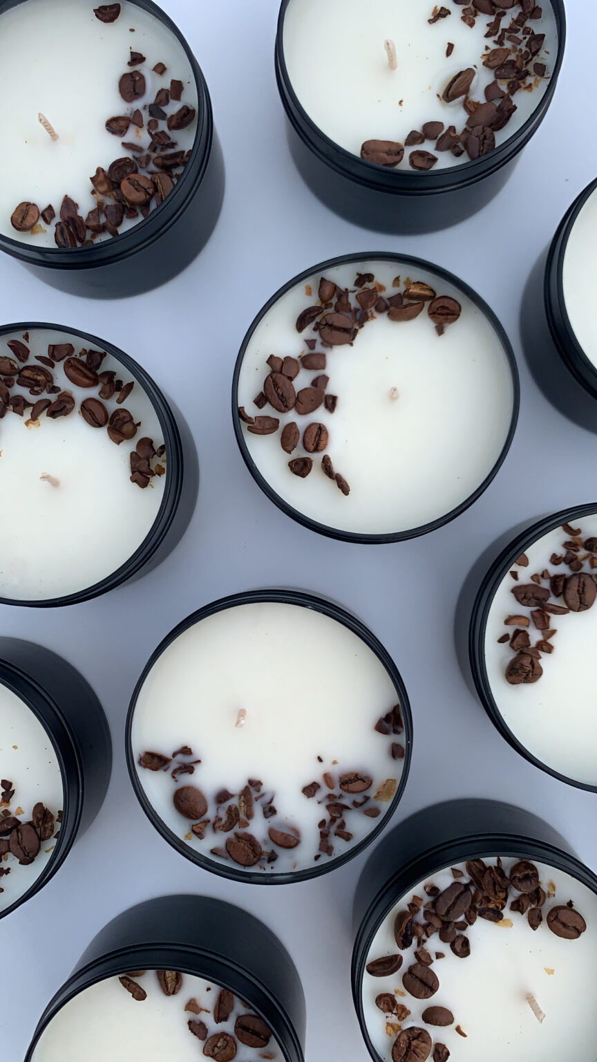 נר ריחני בפחית שחורה גדולה עם פולי קפה הנותנים מראה מיוחד ומעניקים גם נגיעות ריח מיוחדות המתאימות לריח הטבעי של הנר