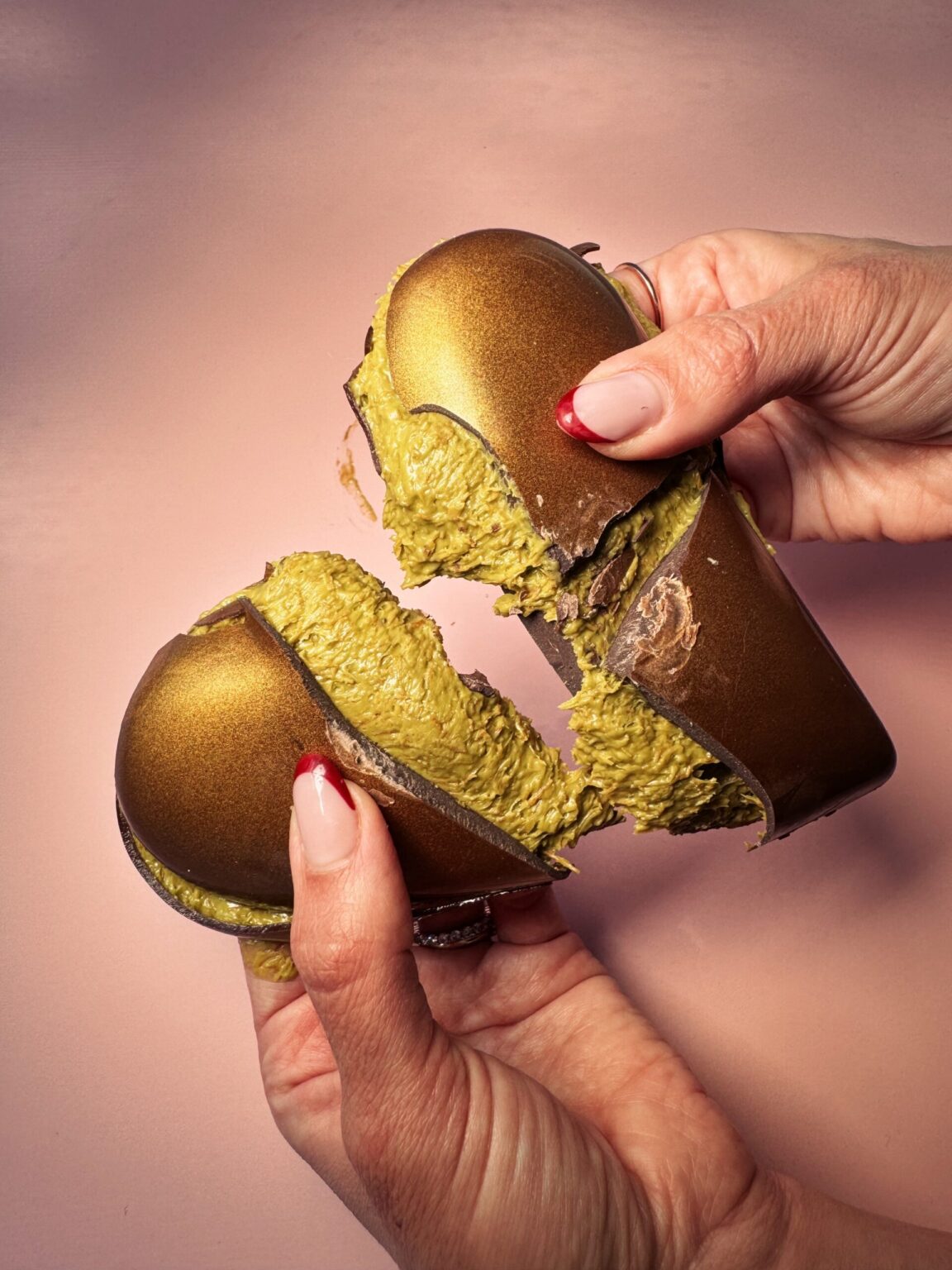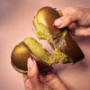 לב שוקולד חלב מוזהב במילוי קרם פיסטוק קדאיף איכותי ויוקרתי