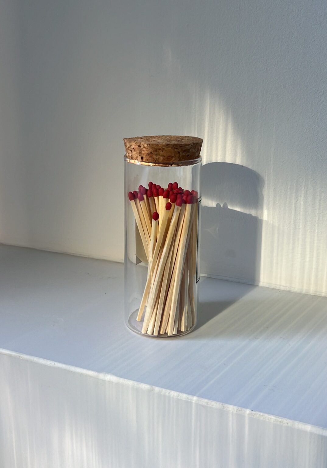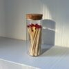 צנצנת גפרורים ארוכים להדלקת נרות בכלי זכוכית.