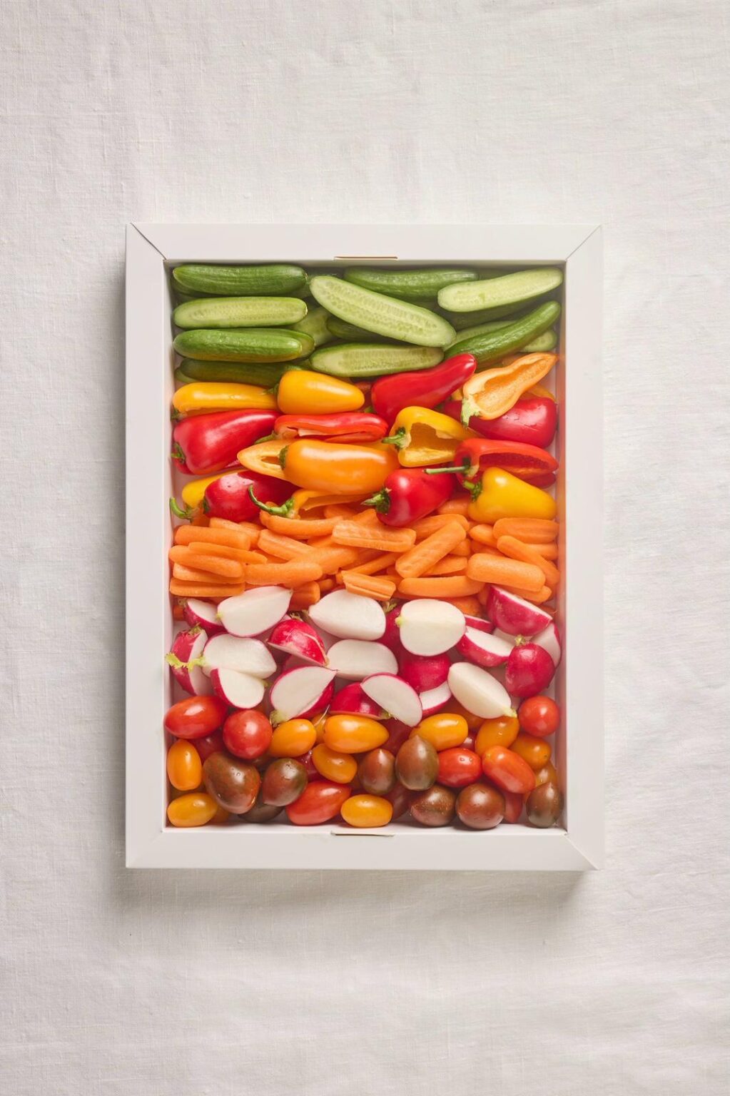 מגש ירקות מיני חתוכים – מלפפון, מיקס שרי, פלפלים, גזר וצנוניות