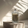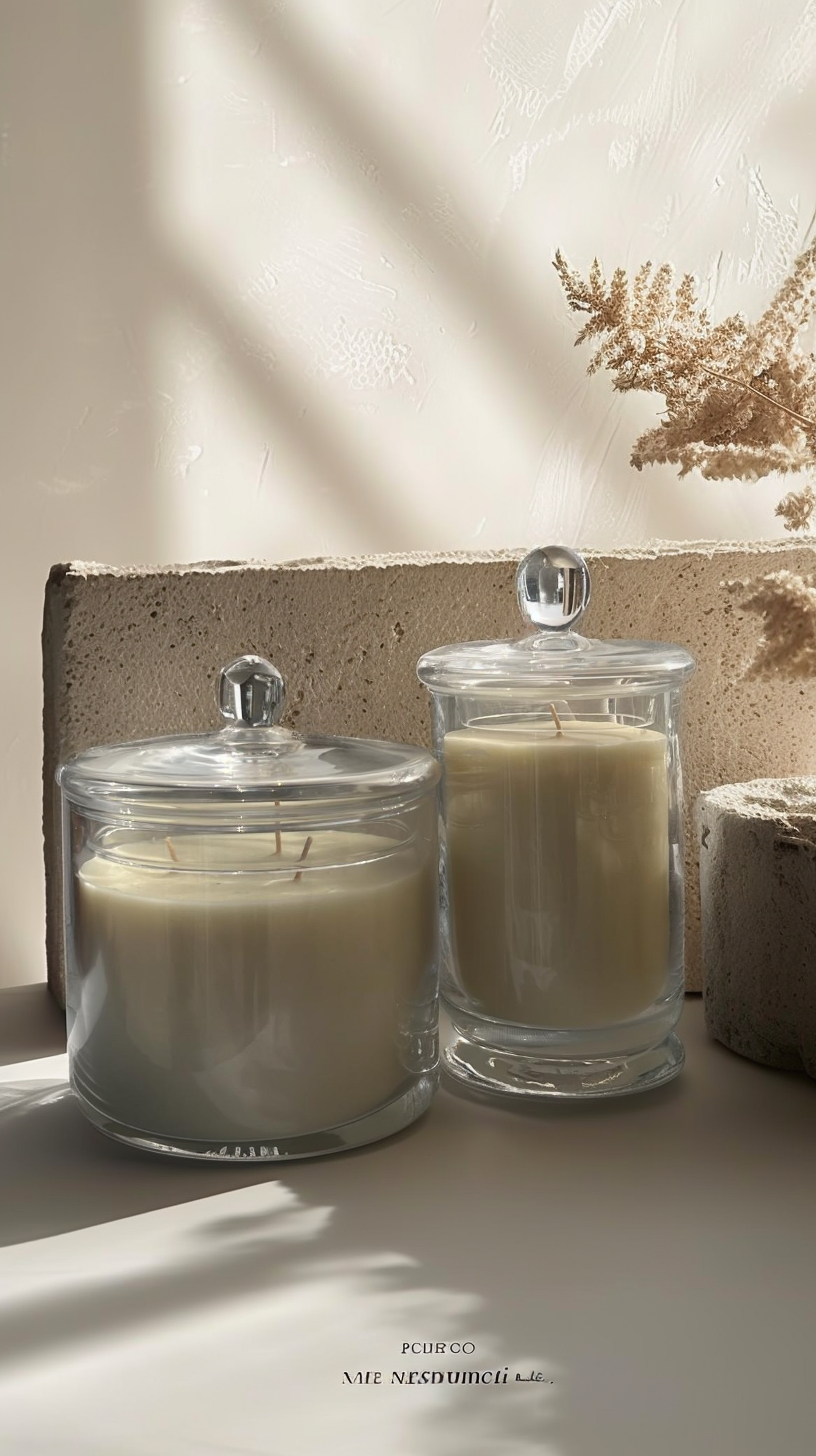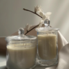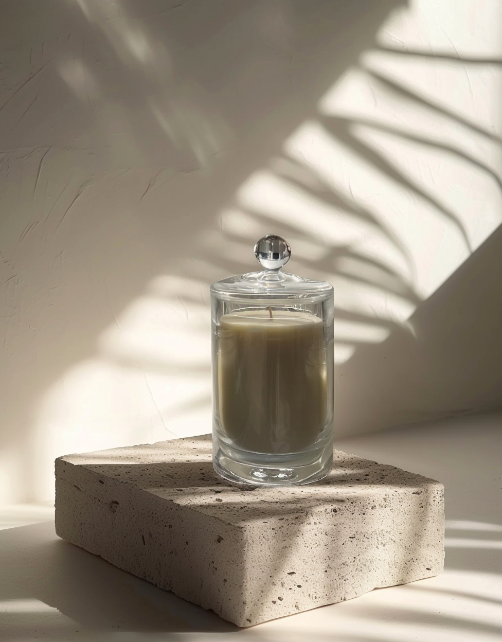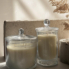 נר ריחני בצנצנת זכוכית מעוצבת עם מכסה המאריך את חיי המדף של הנר.