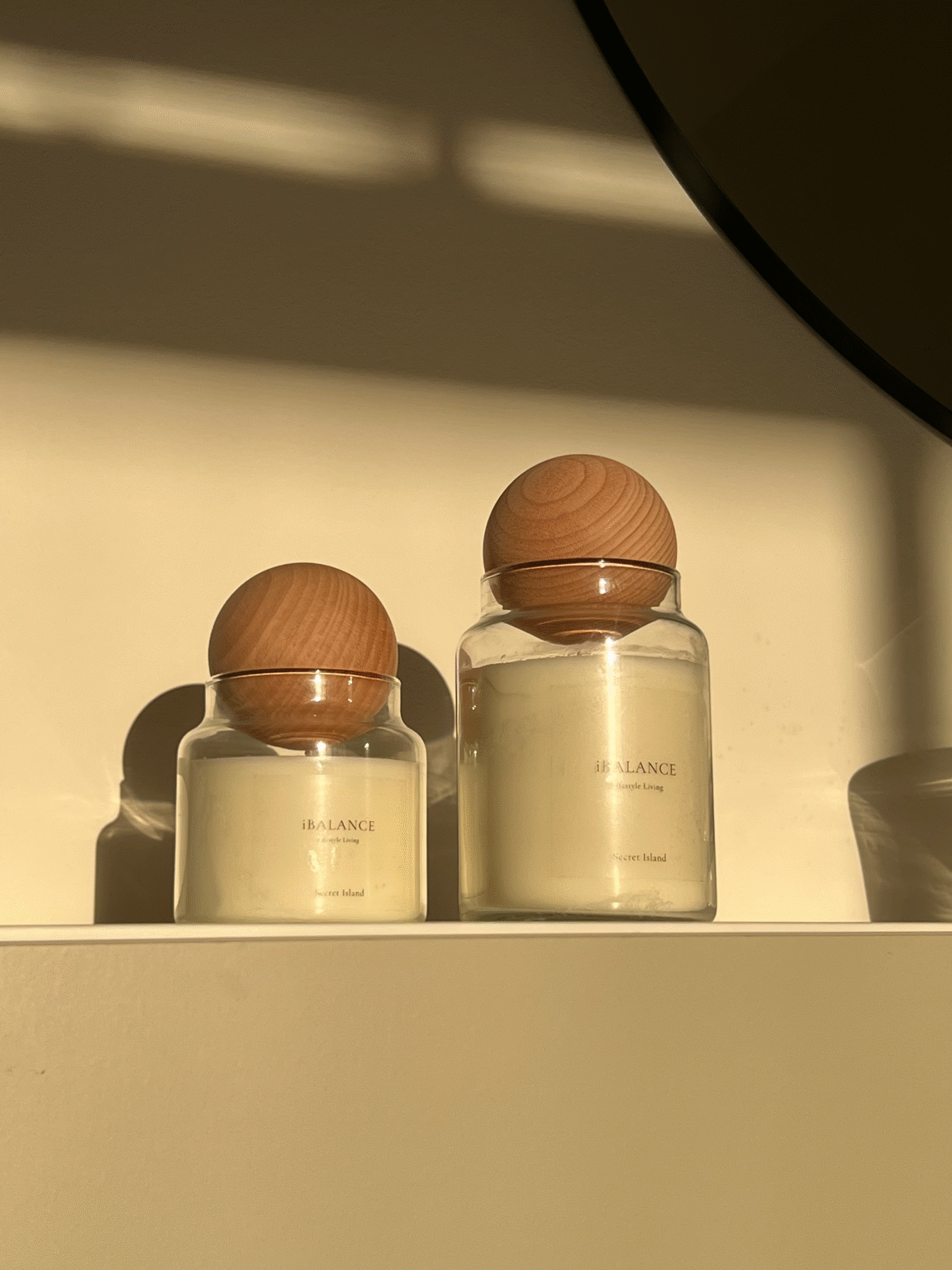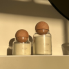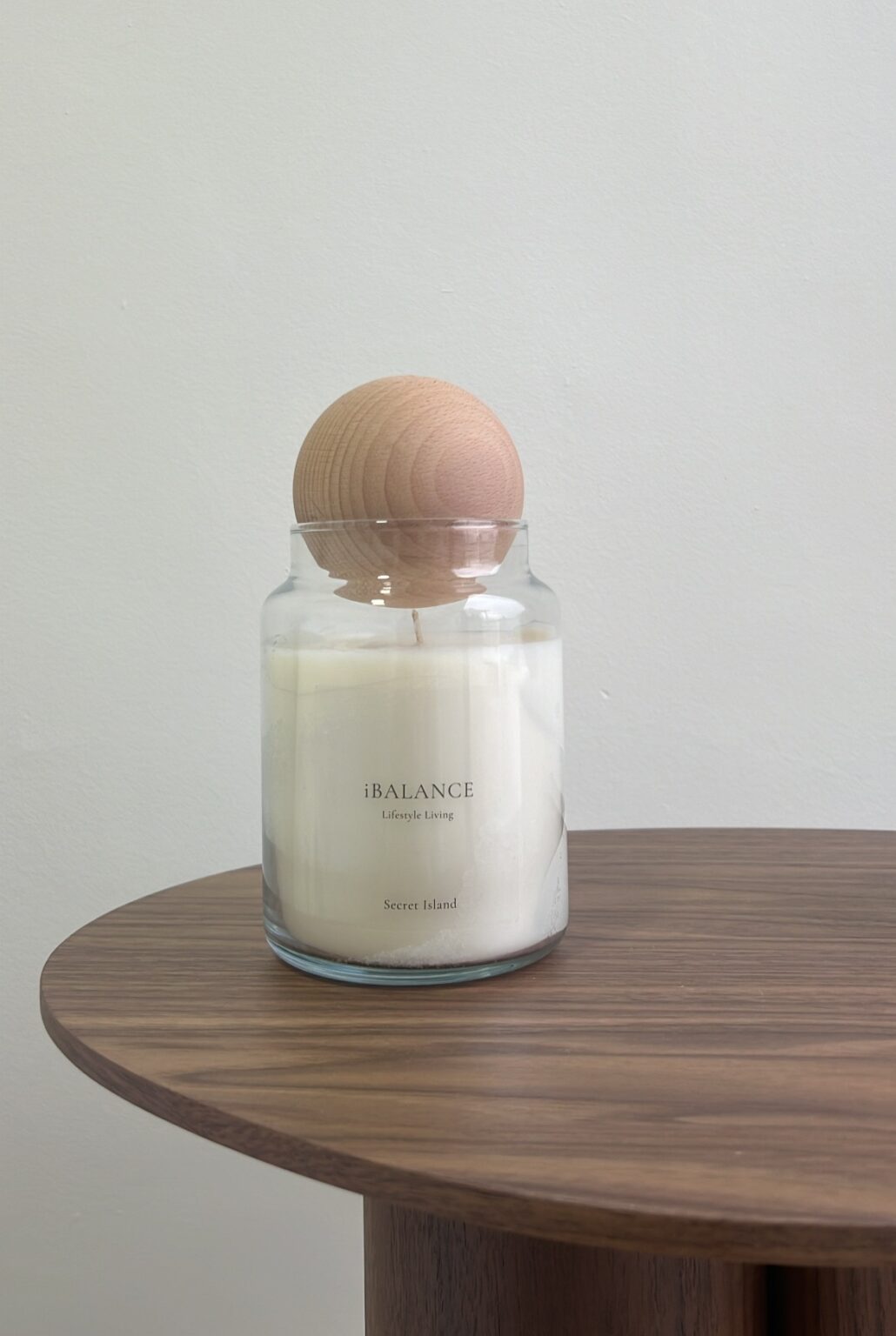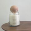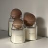 כלי זכוכית עם מכסה עגול מעץ מלא שתורם לשמירה על הריח לאורך זמן.