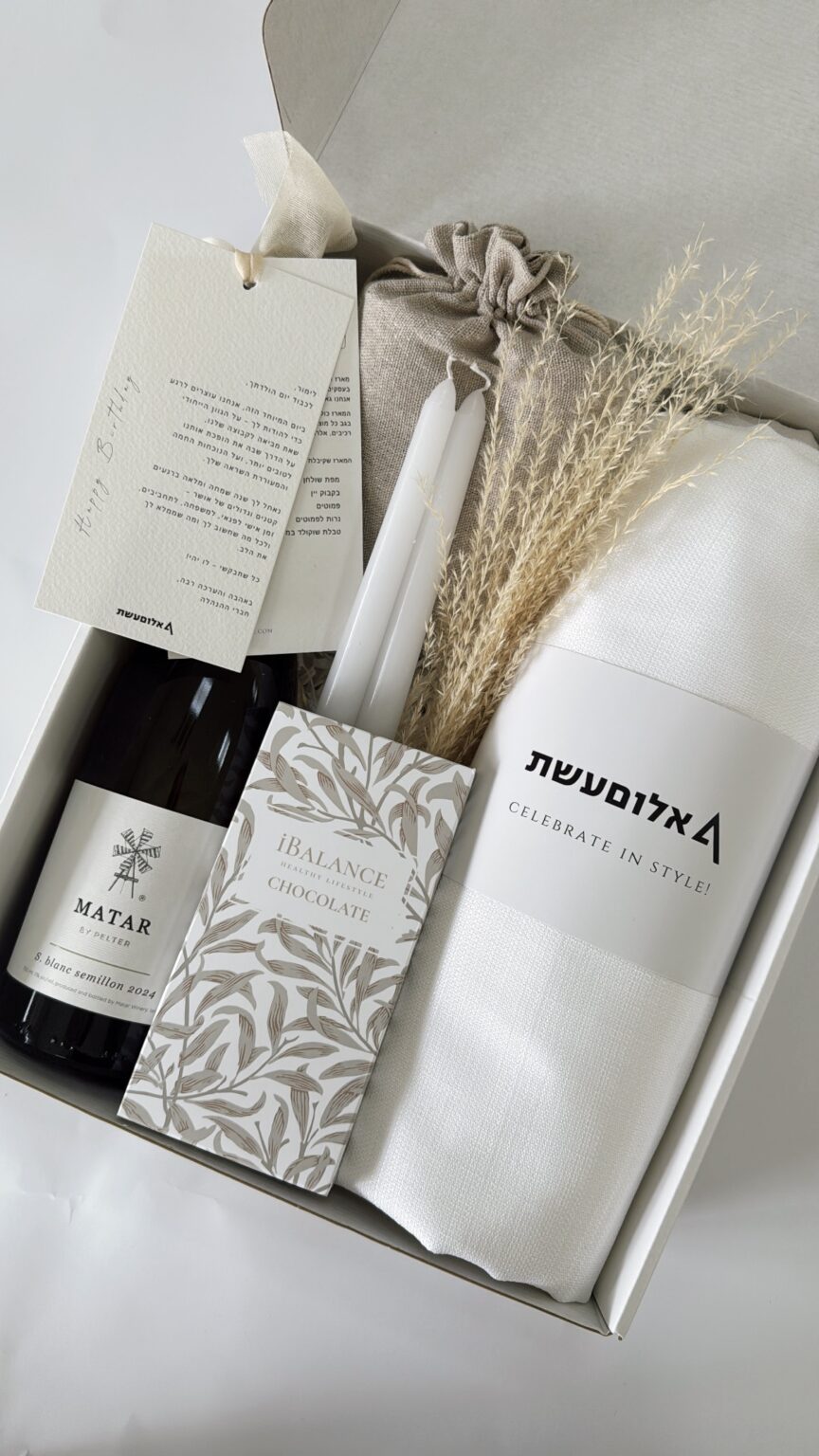 מארזי המתנה שלנו נבנים בעבודת יד ובהתאמה אישית לכל הזמנה – בבחירת הפריטים, הסידור, האריזה ולעיתים גם בהתאם לאירוע או לבקשה מיוחדת.